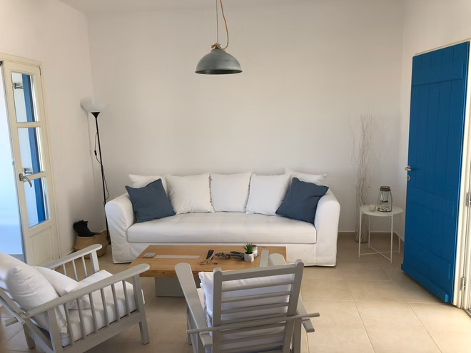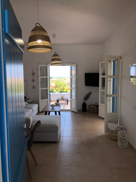 Ausflugsmöglichkeiten für Ihren Urlaub hier gibt es einige: Traditionelle Dörfer wie Marpissa und Lefkes bieten typisch kykladische Architektur und lohnenswerte Spaziergänge. Der kleine Fischerhafen von Piso Livadi hat Tavernen und gute Anbindung zu Bootsausflügen. Die byzantinische Kirche Ekatontapyliani (Hunderttürme-Kirche) in Parikia, eine der ältesten Kirchen Griechenlands, ist ca. 15 Minuten mit dem Auto entfernt. Und bis zum archäologisches Museum von Paros in Parikia sind es nur 12 km.