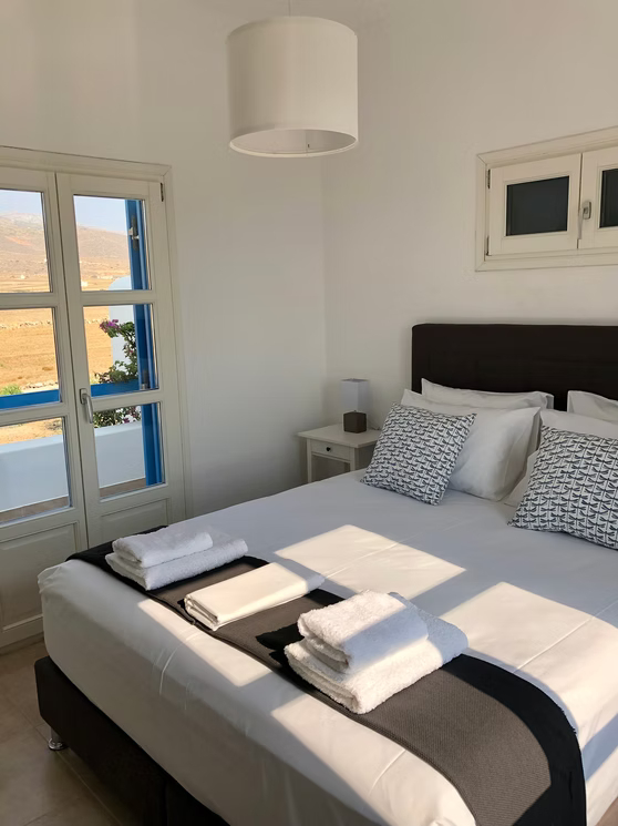 Ausflugsmöglichkeiten für Ihren Urlaub hier gibt es einige: Traditionelle Dörfer wie Marpissa und Lefkes bieten typisch kykladische Architektur und lohnenswerte Spaziergänge. Der kleine Fischerhafen von Piso Livadi hat Tavernen und gute Anbindung zu Bootsausflügen. Die byzantinische Kirche Ekatontapyliani (Hunderttürme-Kirche) in Parikia, eine der ältesten Kirchen Griechenlands, ist ca. 15 Minuten mit dem Auto entfernt. Und bis zum archäologisches Museum von Paros in Parikia sind es nur 12 km.