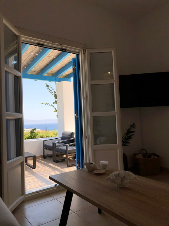 Ausflugsmöglichkeiten für Ihren Urlaub hier gibt es einige: Traditionelle Dörfer wie Marpissa und Lefkes bieten typisch kykladische Architektur und lohnenswerte Spaziergänge. Der kleine Fischerhafen von Piso Livadi hat Tavernen und gute Anbindung zu Bootsausflügen. Die byzantinische Kirche Ekatontapyliani (Hunderttürme-Kirche) in Parikia, eine der ältesten Kirchen Griechenlands, ist ca. 15 Minuten mit dem Auto entfernt. Und bis zum archäologisches Museum von Paros in Parikia sind es nur 12 km.