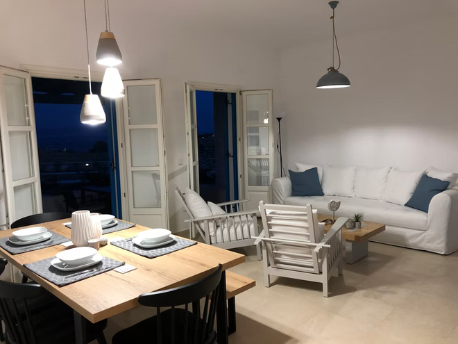 Ausflugsmöglichkeiten für Ihren Urlaub hier gibt es einige: Traditionelle Dörfer wie Marpissa und Lefkes bieten typisch kykladische Architektur und lohnenswerte Spaziergänge. Der kleine Fischerhafen von Piso Livadi hat Tavernen und gute Anbindung zu Bootsausflügen. Die byzantinische Kirche Ekatontapyliani (Hunderttürme-Kirche) in Parikia, eine der ältesten Kirchen Griechenlands, ist ca. 15 Minuten mit dem Auto entfernt. Und bis zum archäologisches Museum von Paros in Parikia sind es nur 12 km.