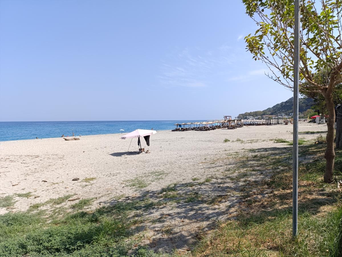 Der Hauptstrand von Horefto beginnt rechts – Richtung des kleinen Bootshafens – als reiner Steinstrand, wird dann jedoch zu einem ordentlich breiten und langen Sandstrand. Aufgrund seiner Länge lädt dieser Strand förmlich zu einem ausgedehnten Strandspaziergang ein. Selbst in der Hochsaison läuft man hier nicht Gefahr, sich allzu sehr eingeengt zu fühlen.